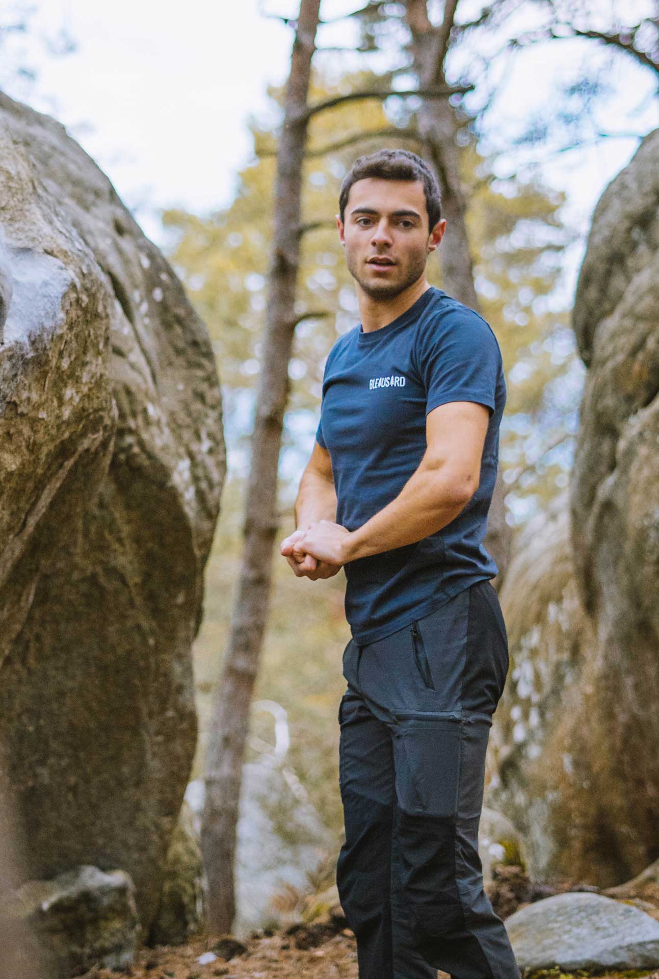 Nous sommes donc surexcités à l'idée de vous présenter en cette fin d’été notre toute capsule exclusive FBCP x. Bleausard ! Un modèle de t-shirts et de sweat unisexe, pour plaire à tout le monde ! Ce nouveau tee-shirt vous suivra partout, des dalles de Franchard à votre salle favorite les jours de pluie, voire même au bureau pour les plus audacieux !